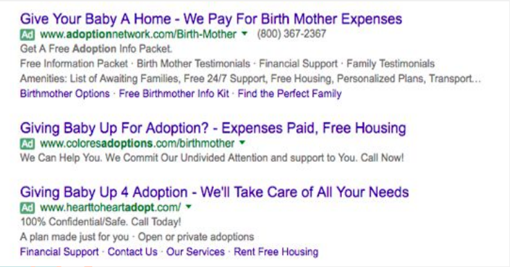 Some adoption agencies & other predatory entities spend up to $10,000 per day on internet ads to find vulnerable and marginalized pregnant people in service of a starkly outsized and competitive market demand for adoptable babies.