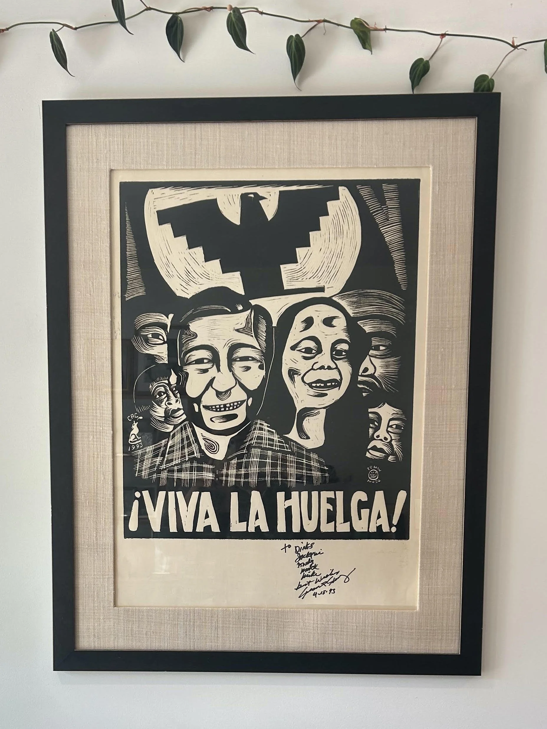 This poster. This poster of César and Dolores. This poster that my first (birth) father Michael Guerra gave to me when I was 19 or 20 years old. His mother, my grandmother Cindy, gave it to him. She had received it when volunteering in Chicago for UFW in 1993. César had signed it about a week before he died. He had addressed it to my father and all my tias and tios, my aunts and uncles. His signature in black marker.